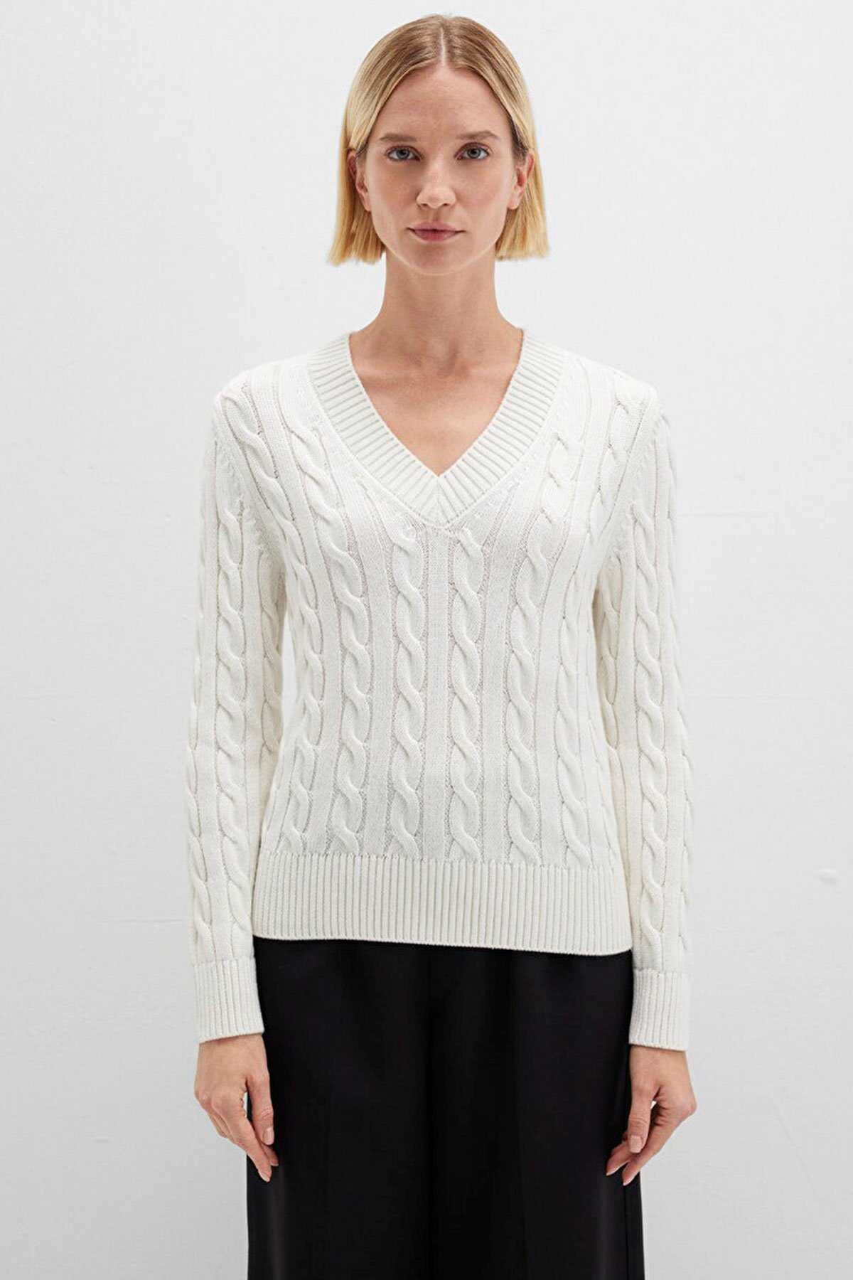 Mavi nin kadın koleksiyonundan Ekru Kazak.-Ürün Kodu: 1710720-70057-Kumaş Bilgileri-%95 Pamuk-%5 İpek-Manken Ölçüleri-Alt: Bel: S Üst: S-Boy: 177 cm Bel: 61 cm Göğüs: 82 cm Kalça: 89.5 cm-Menşei: Türkiye