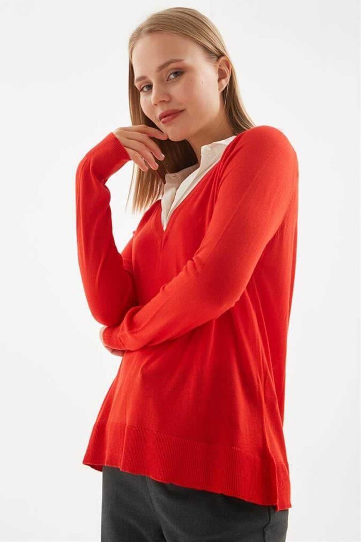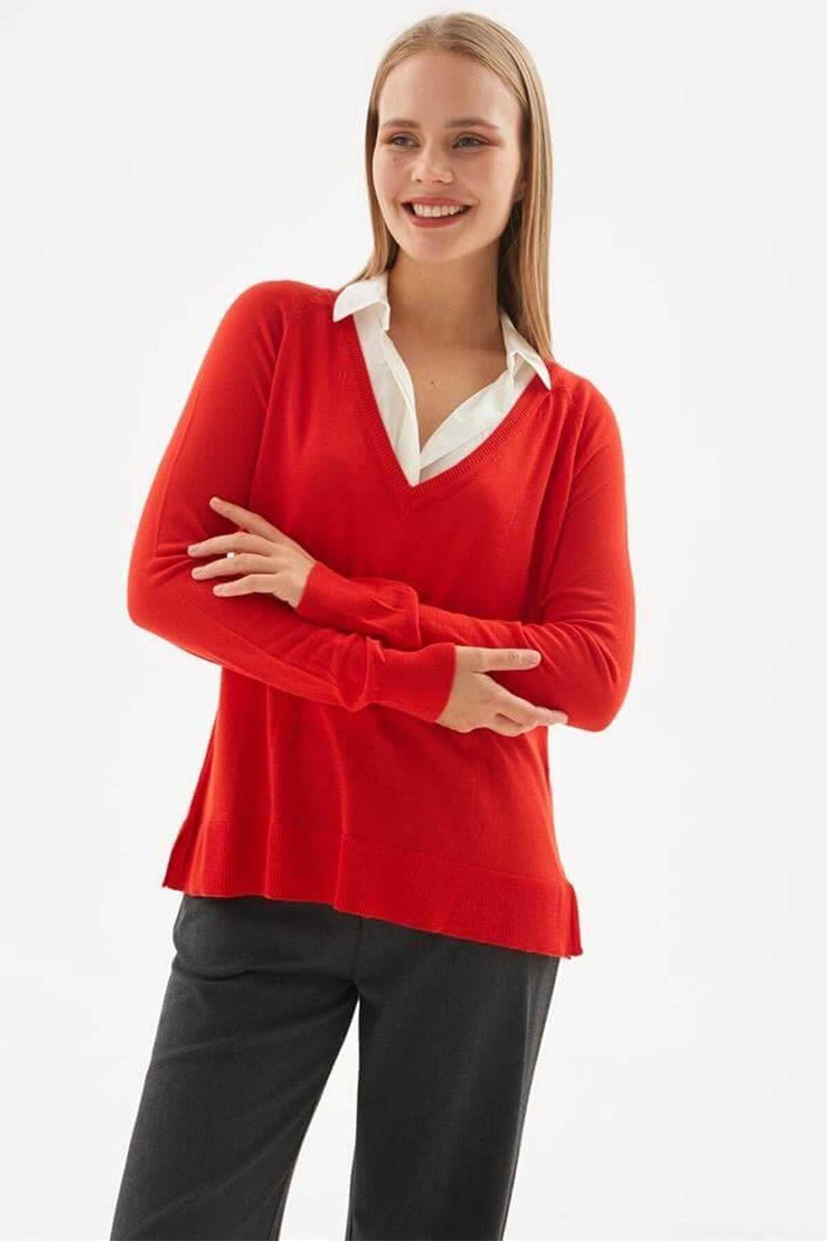 V Yaka Kazak-Model Ölçüleri:Boy: 1.70 Göğüs:90 Bel:68 Basen:90-Mankenin üzerindeki ürün S2836 bedendir.-Cinsiyet: Kadın-Kalıp: Normal-Yaka Tipi: V Yaka-Kol Tipi: Uzun Kol-Kumaş: %50 Viskon %50 Akrilik-Ürün Tipi: Triko