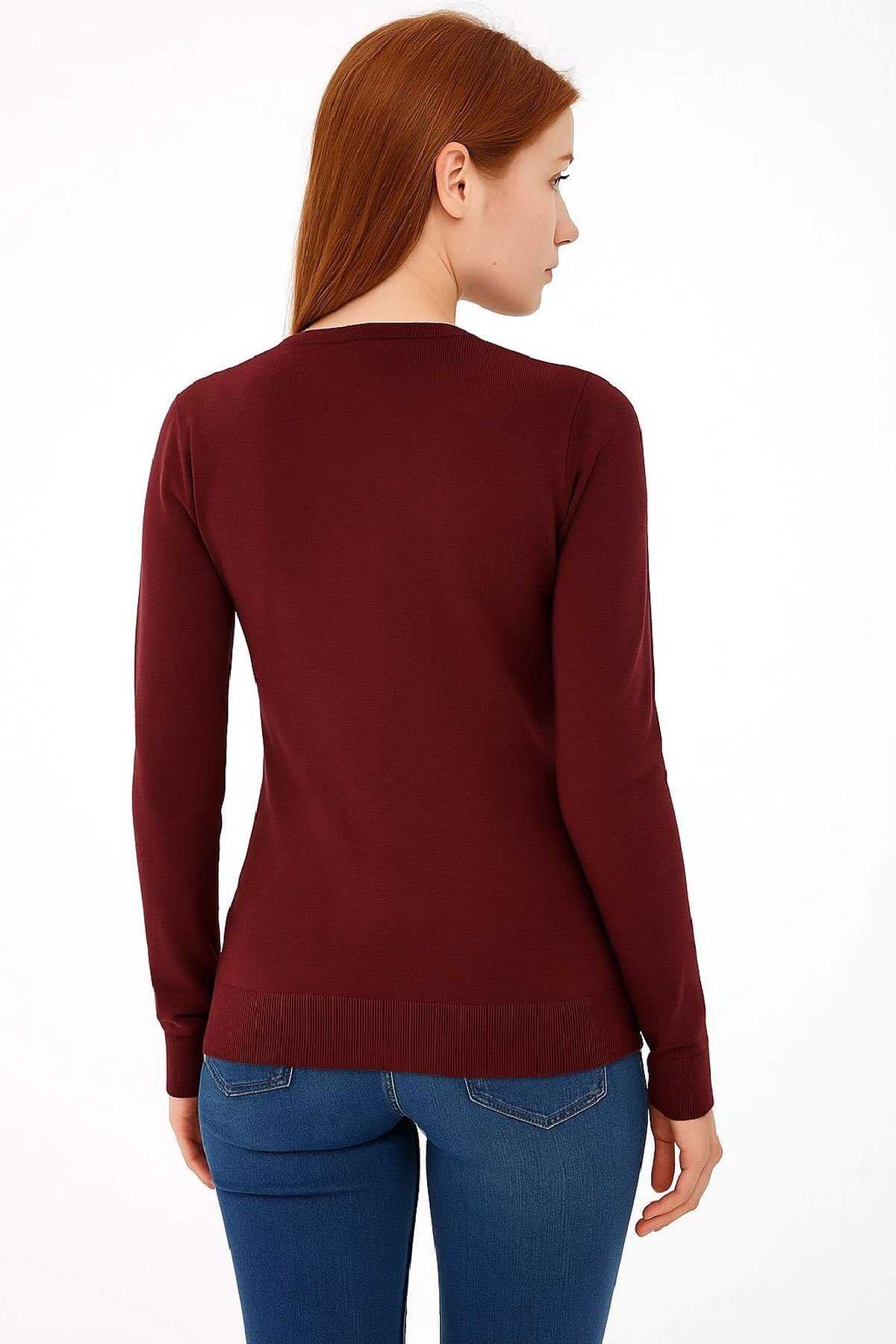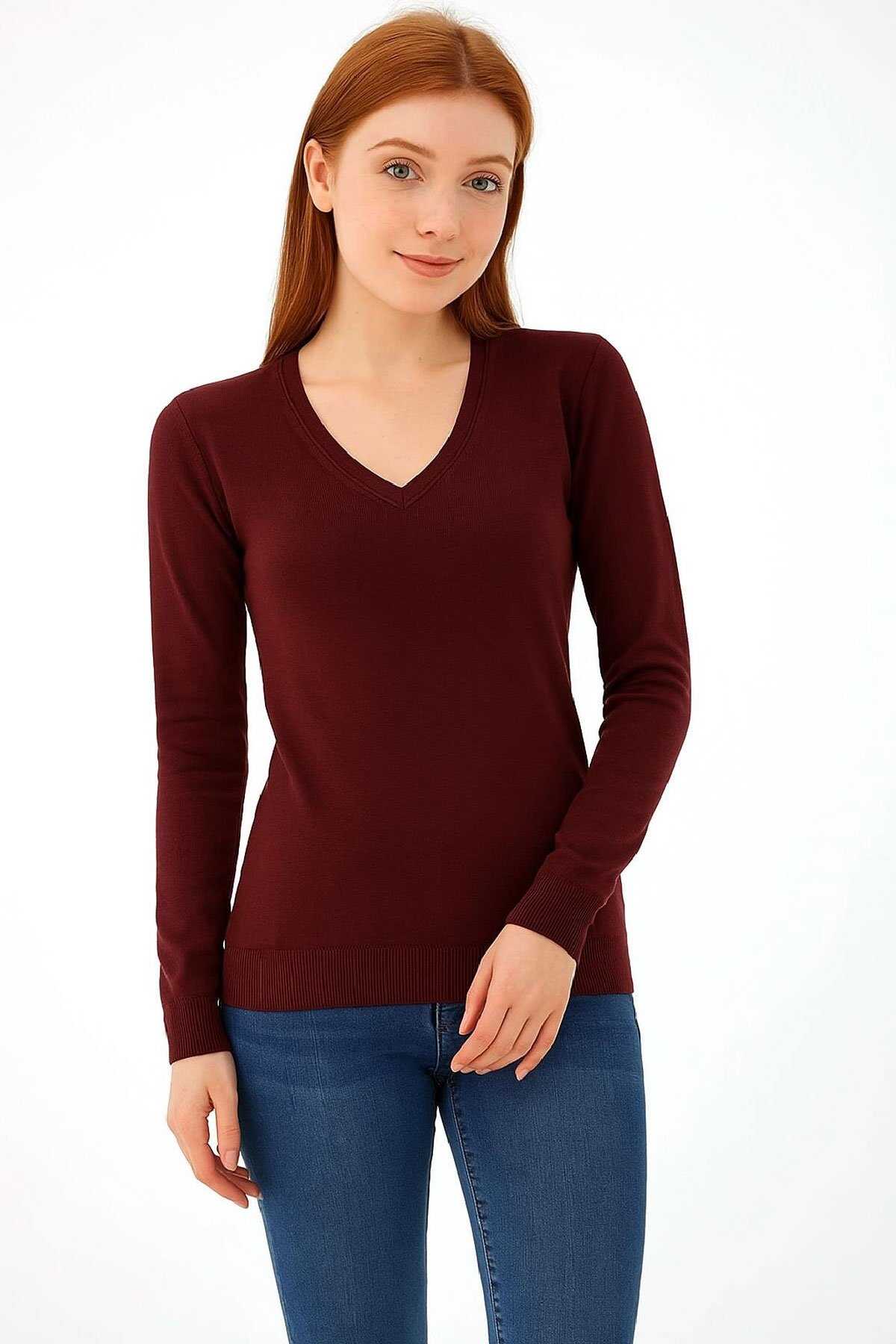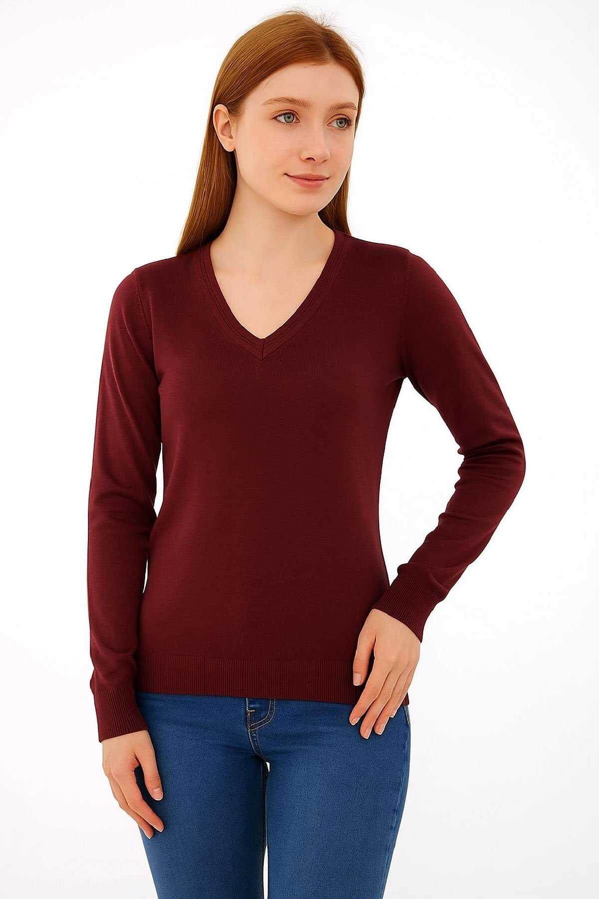 Kadın V Yaka Kazak 25K0778K1 Bordo