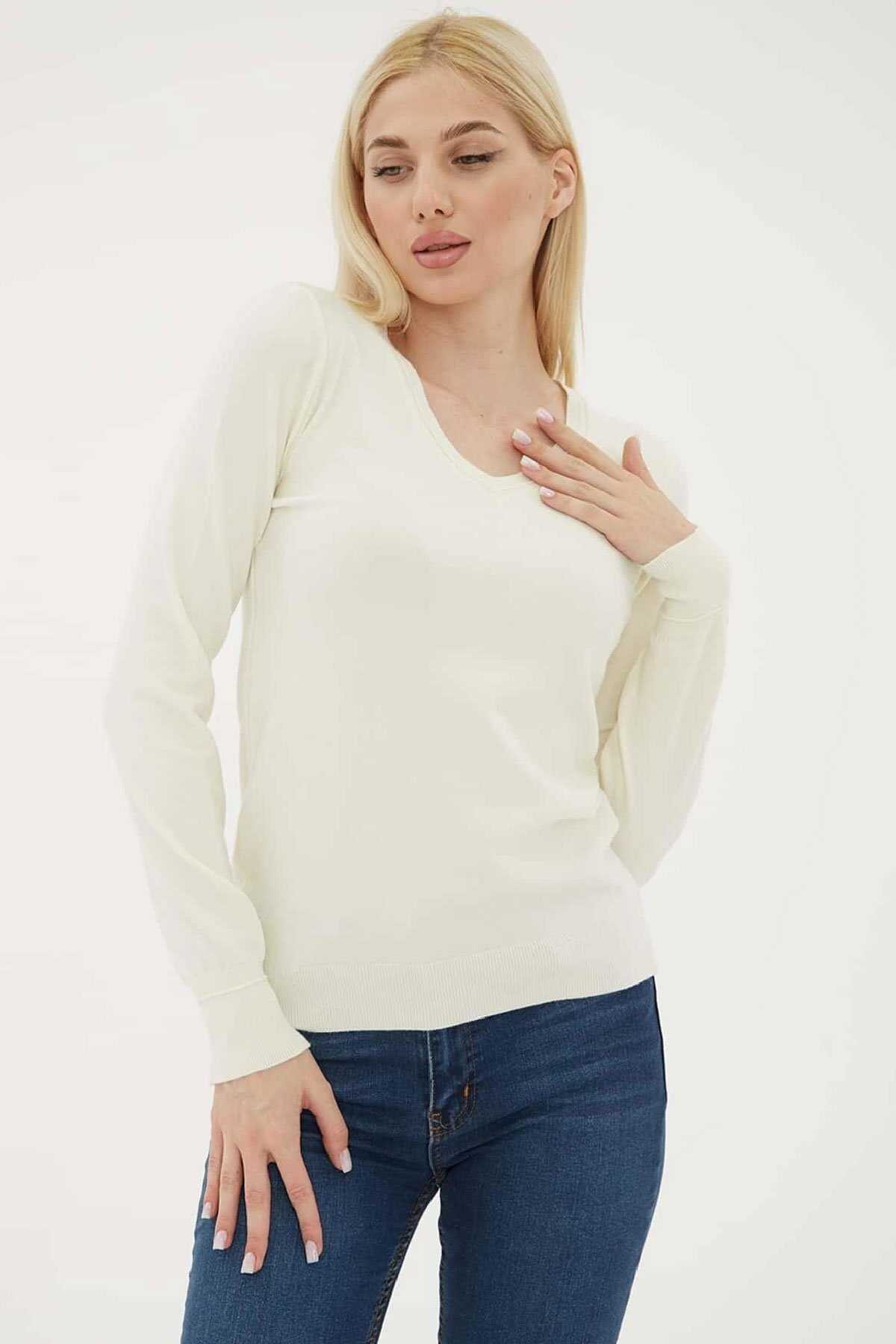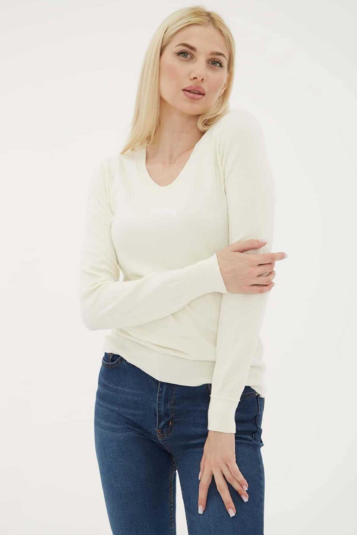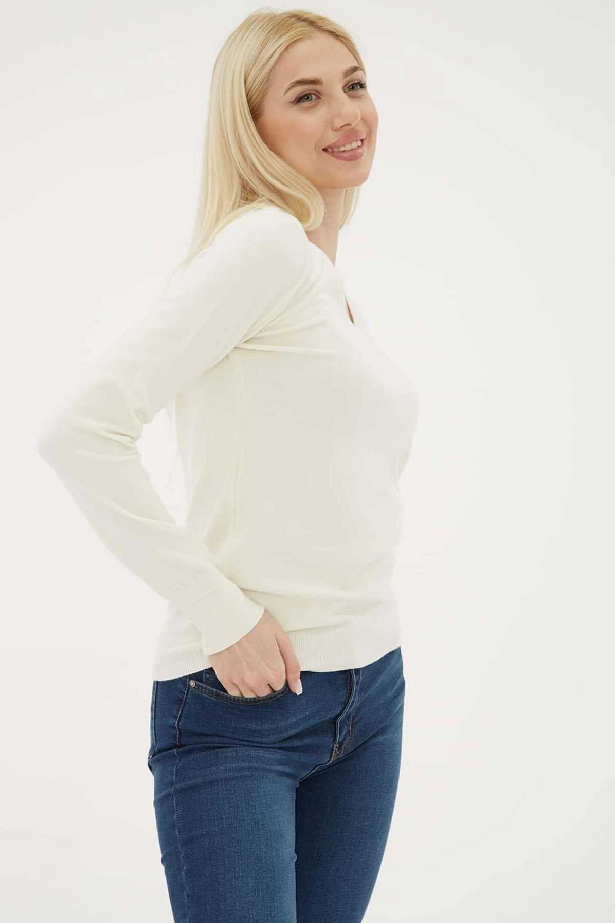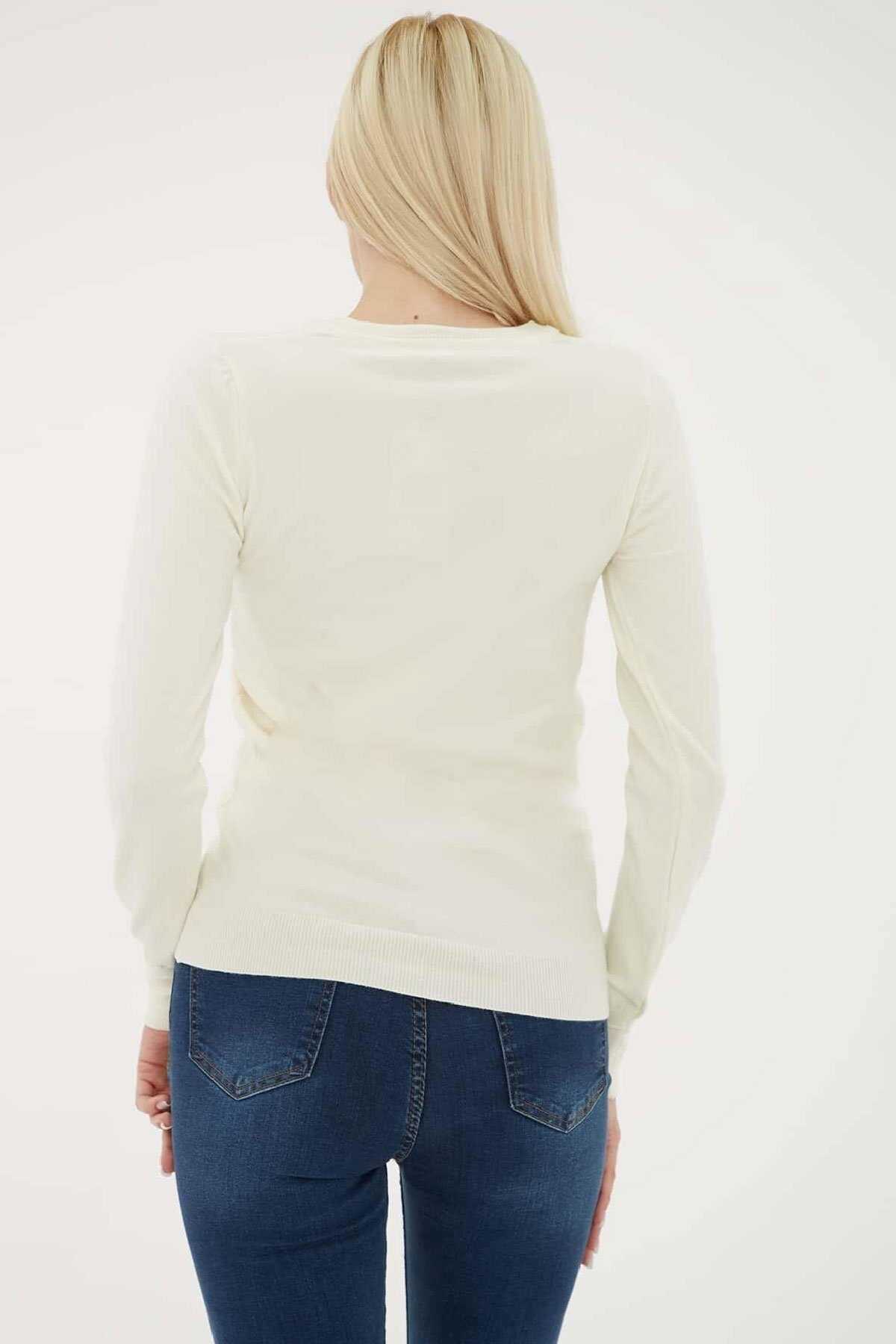 Kadın V Yaka Kazak 25K0778K1 Ekru