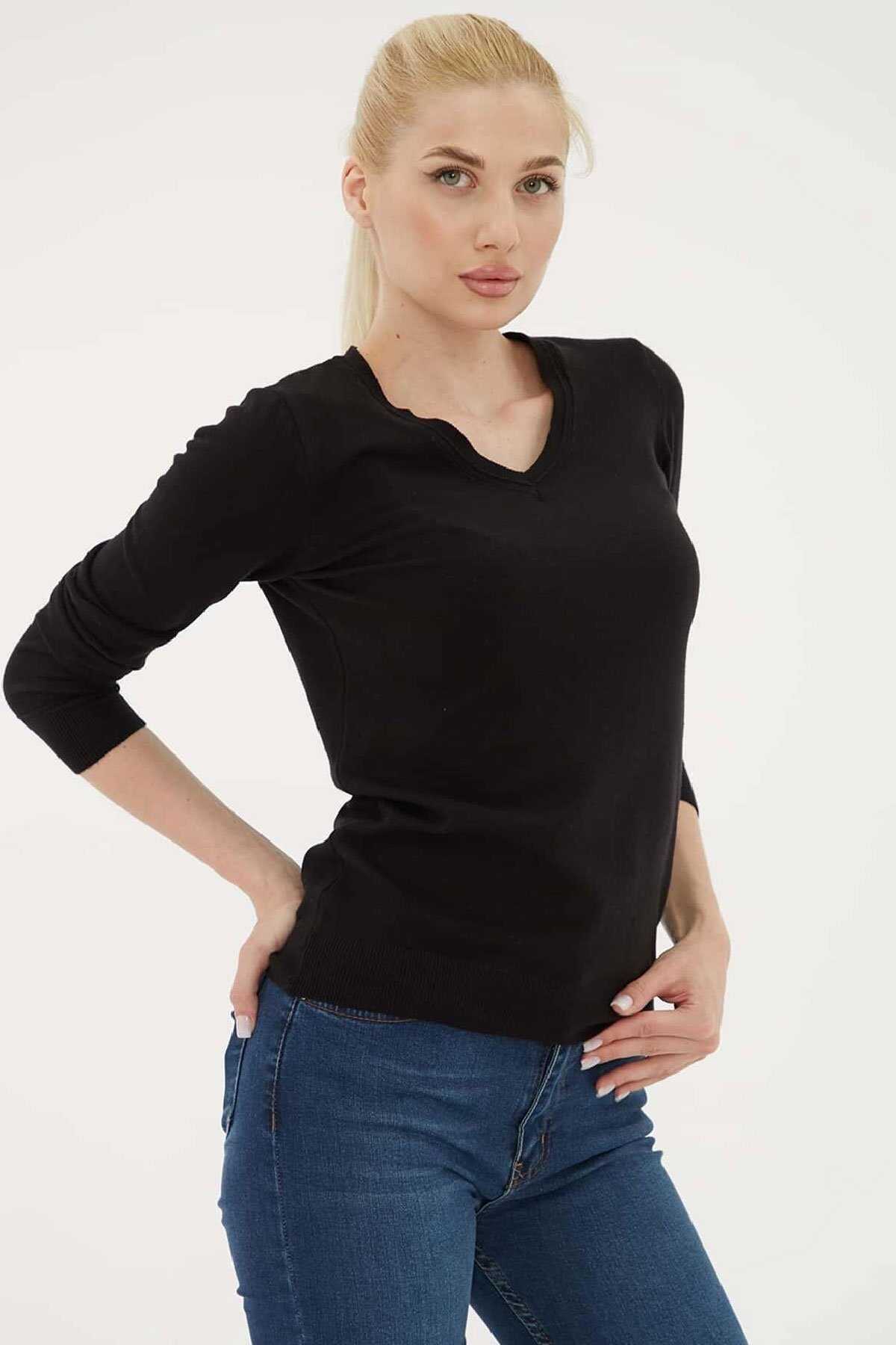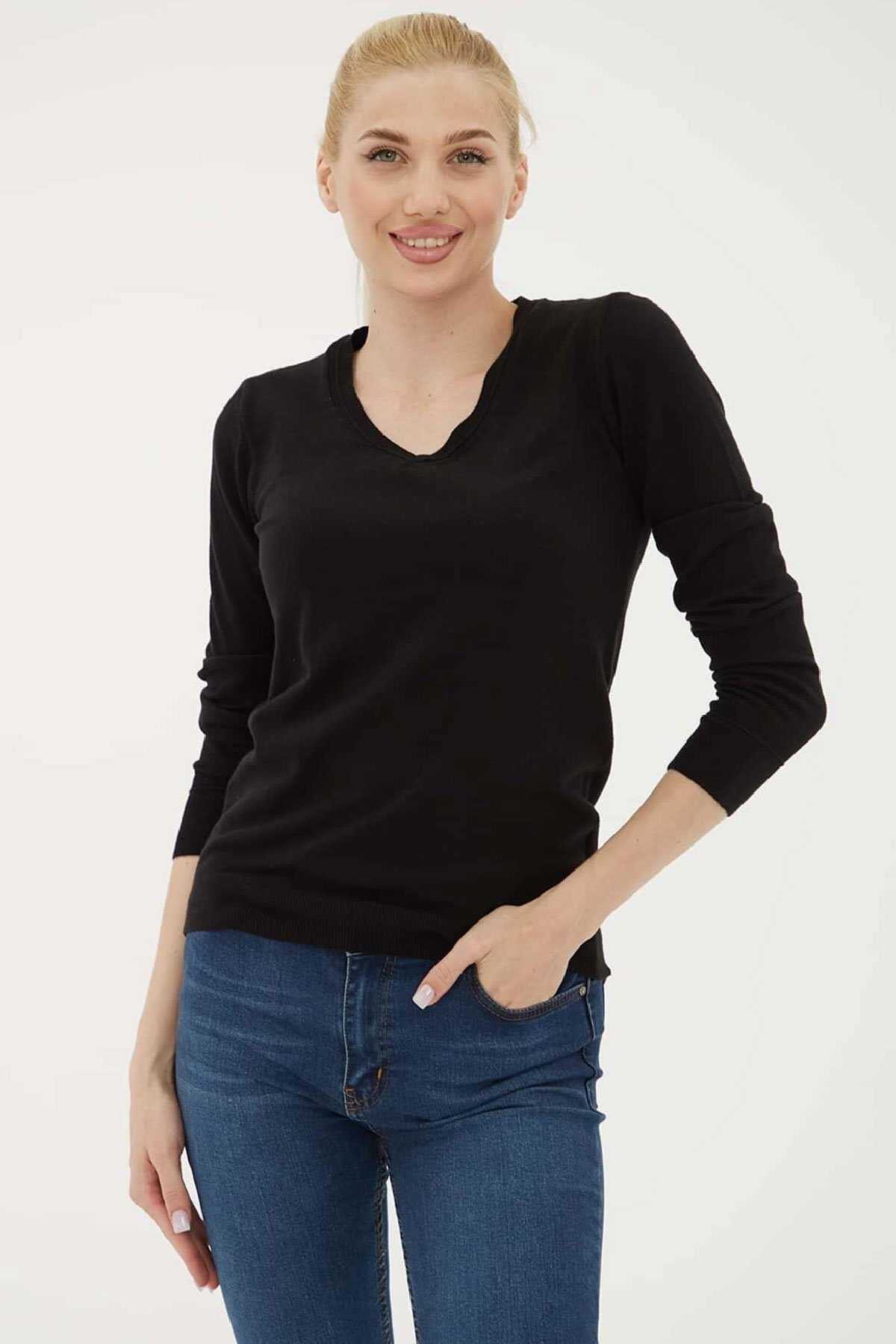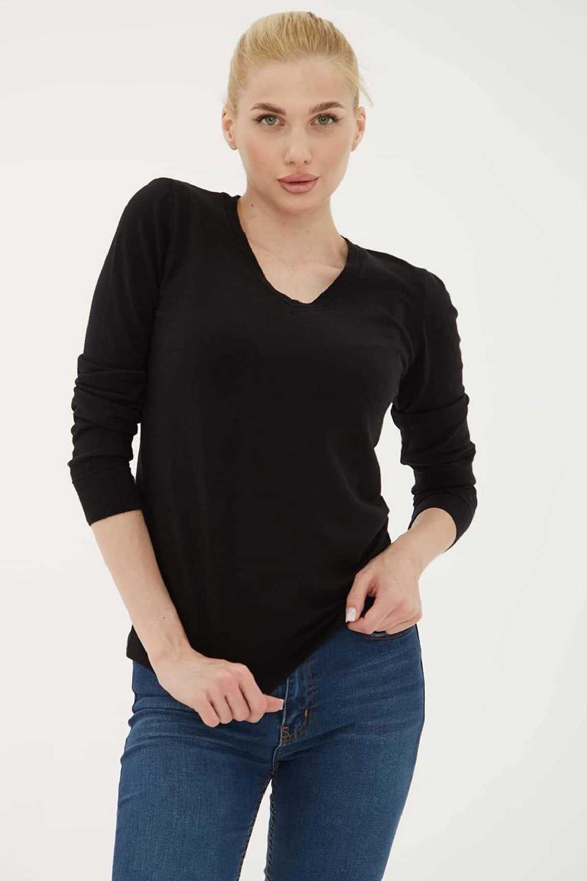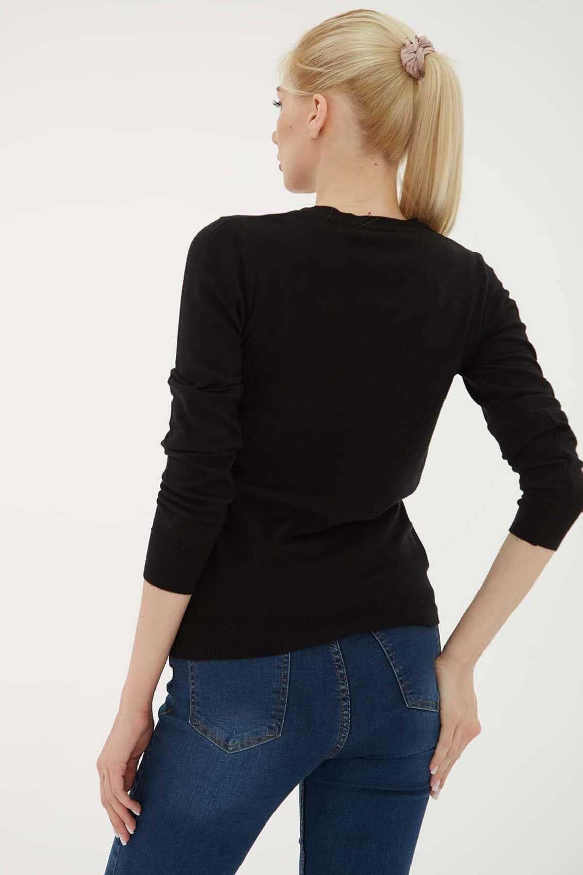 Kadın V Yaka Kazak 25K0778K1 Siyah