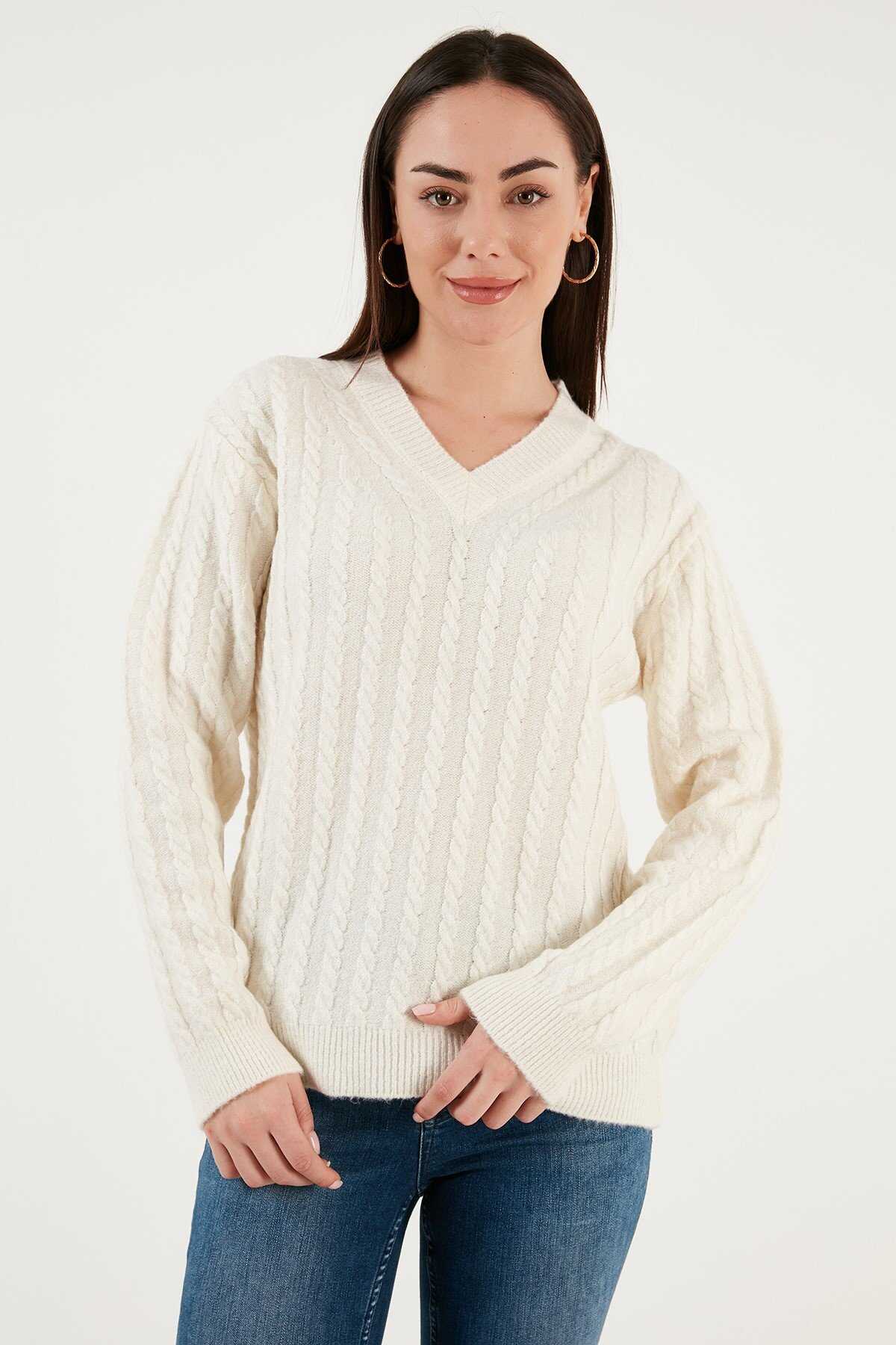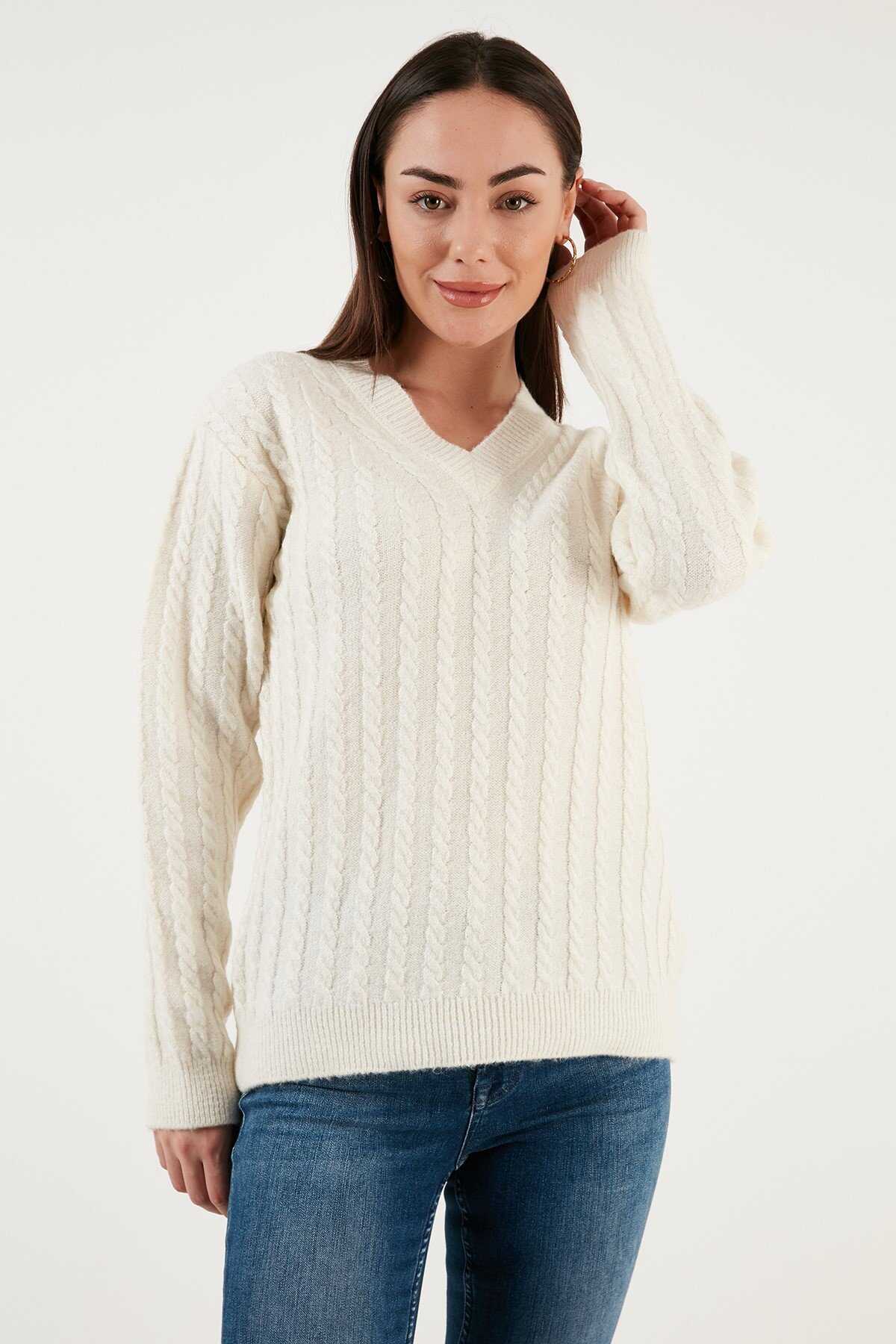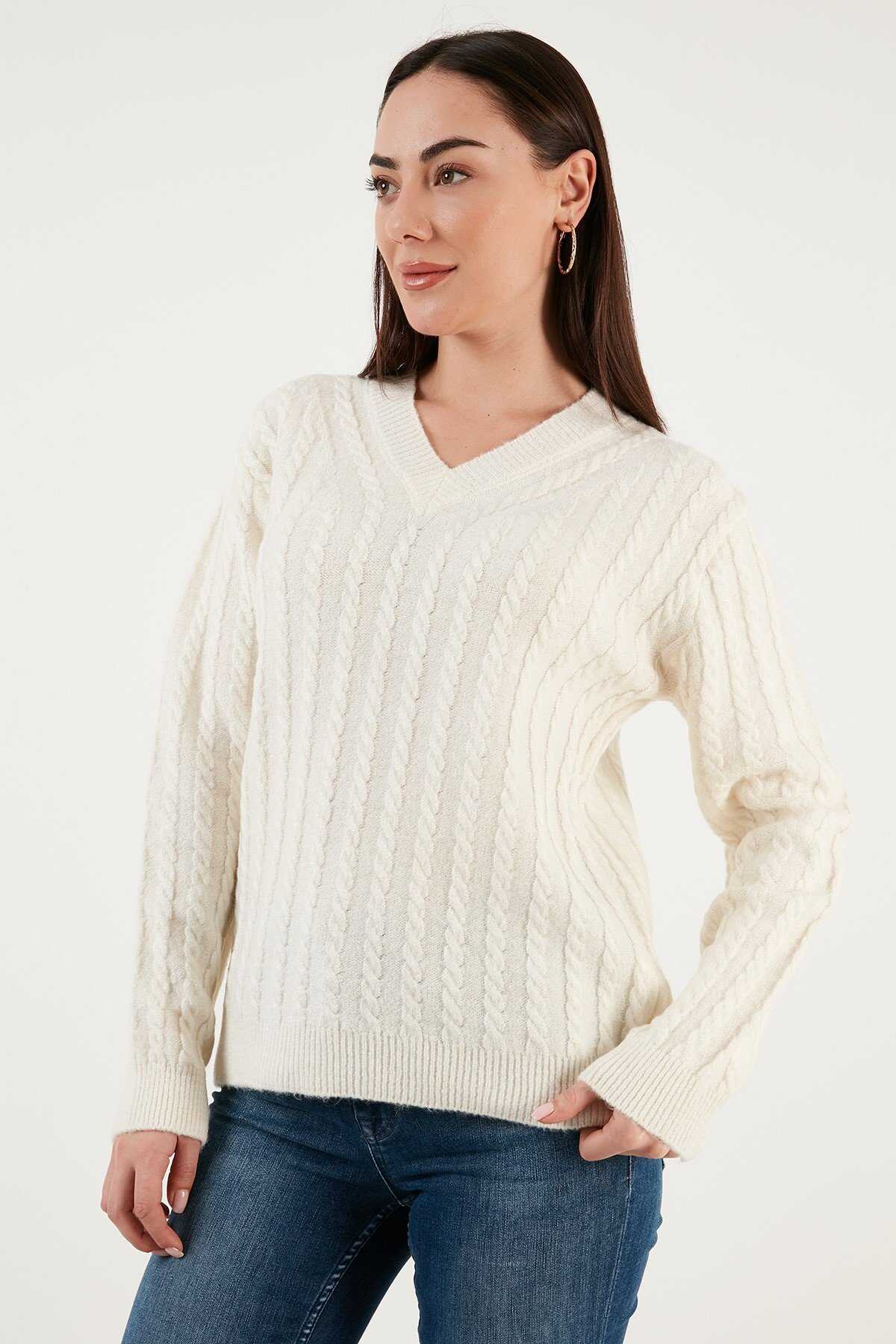 Marka : Fashion Firends-Model : Kazak-Sezon : SonbaharKış-Desen : Örgü Deseni-Materyal : % 76 Akrilik % 22 Polyester % 2 Elastan-Yaka Bilgisi : V Yaka-Kol Bilgisi : Uzun Kol-Kalıp Bilgisi : Regular Fit-Detay : Triko Standart uzunluk-Manken Ölçüsü : Boy : 1.70 cm Göğüs : 80 cm Bel : 65 cm Basen : 95 cm Beden : S