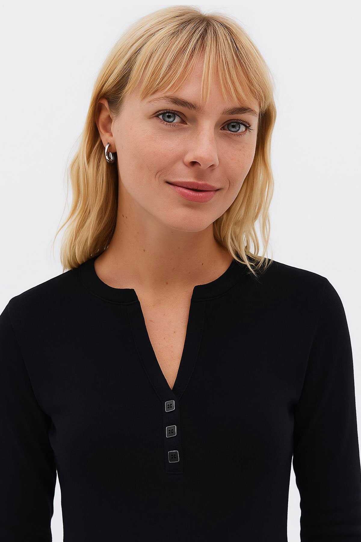 Yakası Düğmeli T-Shirt Fashion Friendsun şıklık ve rahatlığı buluşturan özel tasarımlarından biridir. - Dar kalıbı ile vücudunuza uyum sağlarken özgür hareket etmenize imkan verir. - V Yaka detayı ile modern ve dikkat çekici bir stil yaratır. - %92 Viskon %8 Elastan kumaşı nefes alabilir yapı sunar. - Fashion Friendsun kalitesiyle üretilen bu Yakası Düğmeli T-Shirt gardırobunuzda uzun süre yer alacak. - Model Ölçüleri:Boy:1.70 Göğüs:90 Bel:68 Basen:90 Mankenin üzerindeki ürün S2836 bedendir. - Cinsiyet: Kadın - Kalıp: Dar - Yaka Tipi: V Yaka - Desen: Düz - Kol Tipi: Uzun Kol - Kumaş: %92 Viskon %8 Elastan - Ürün Kodu: 25K0136K1 - Menşei: Türkiye