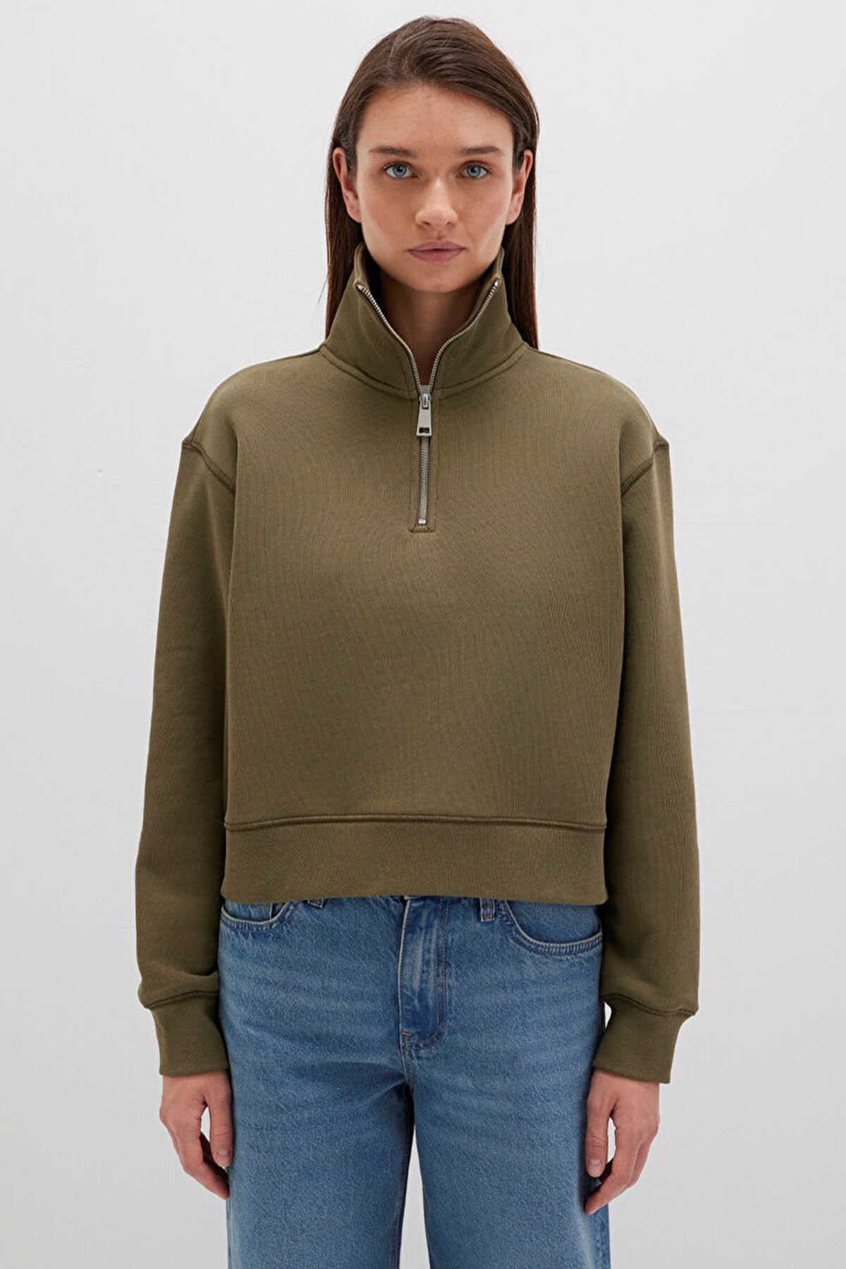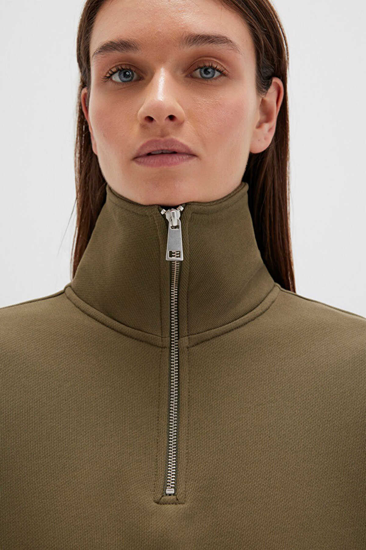 Mavi nin kadın koleksiyonundan Yarı Fermuarlı Haki Sweatshirt. - Regular Fit Normal Kesim - Ürün Kodu: 1S10391-71589 - Kumaş Bilgileri - %100 Pamuk - Manken Ölçüleri - Jean: Bel: 26 Boy: 32 Üst: S - Boy: 176 cm Bel: 61 cm Göğüs: 80.5 cm Kalça: 90.5 cm - Menşei: Türkiye