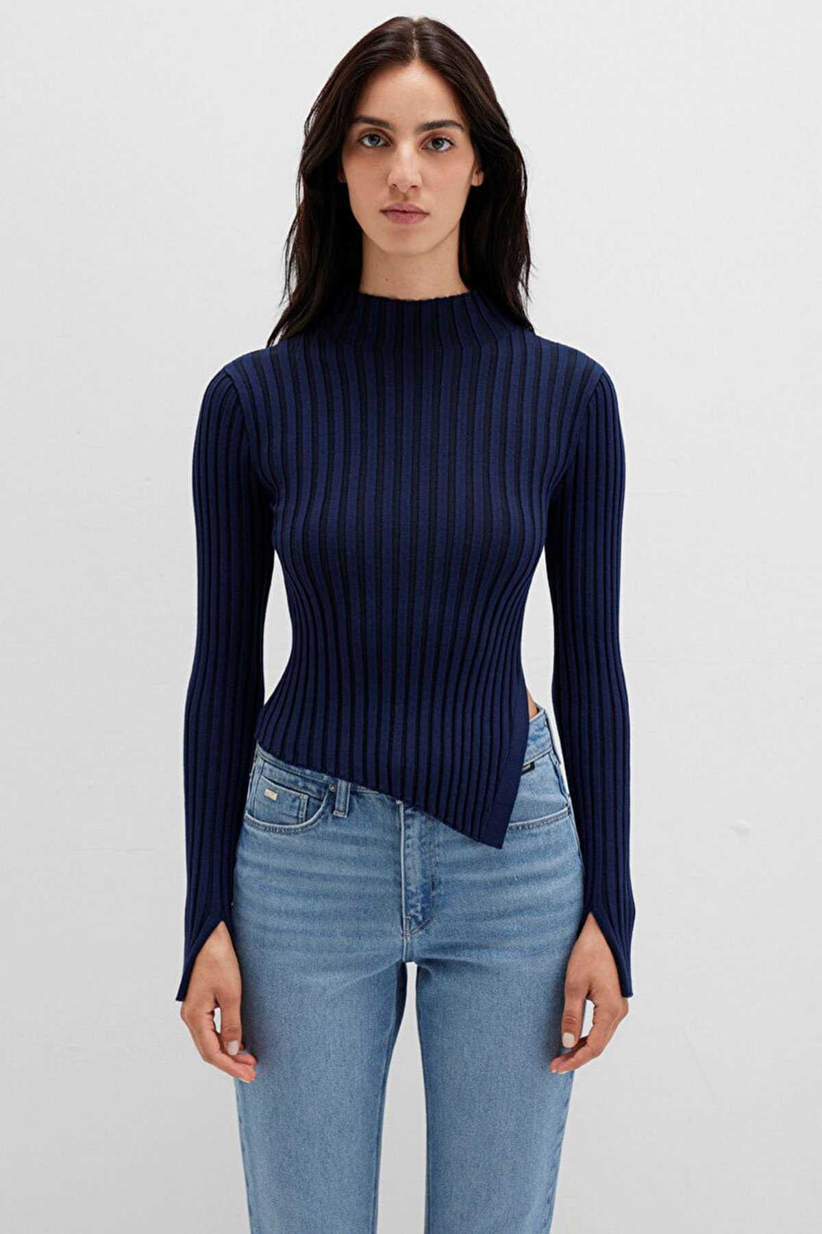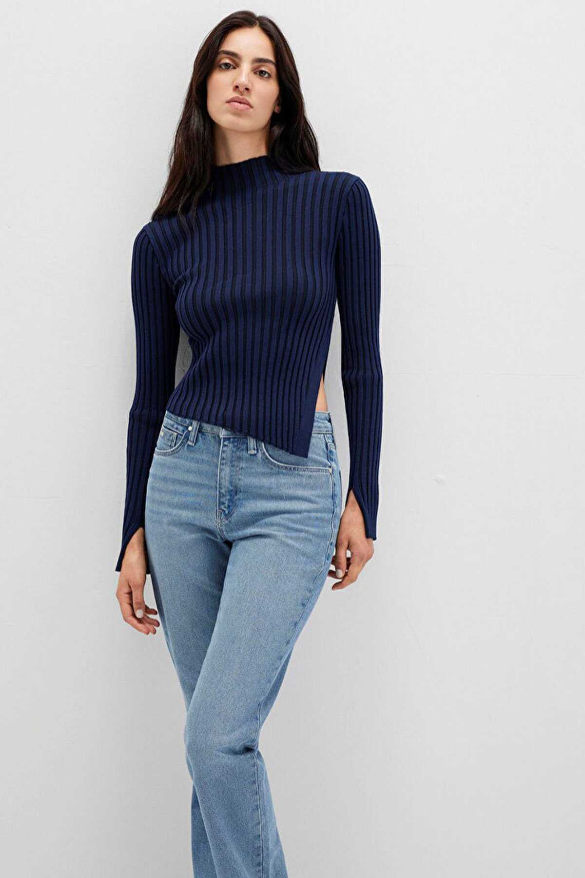Mavi nin kadın koleksiyonundan Yırtmaç Detaylı Lacivert Kazak.-Ürün Kodu: 1710789-70497-Kumaş Bilgileri-%50 Viskoz-%50 Polyamit-Menşei: Türkiye