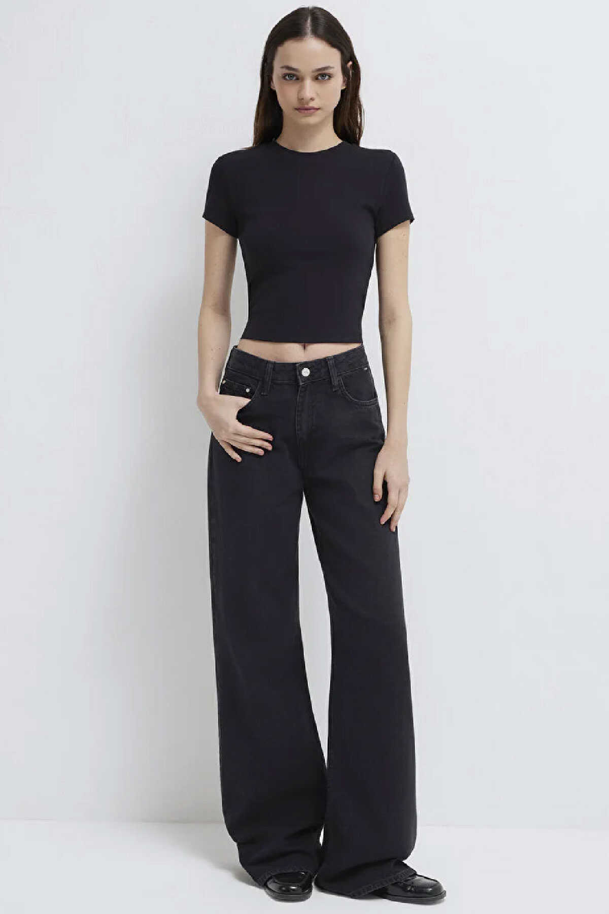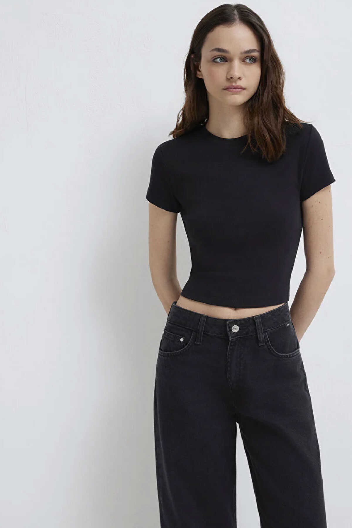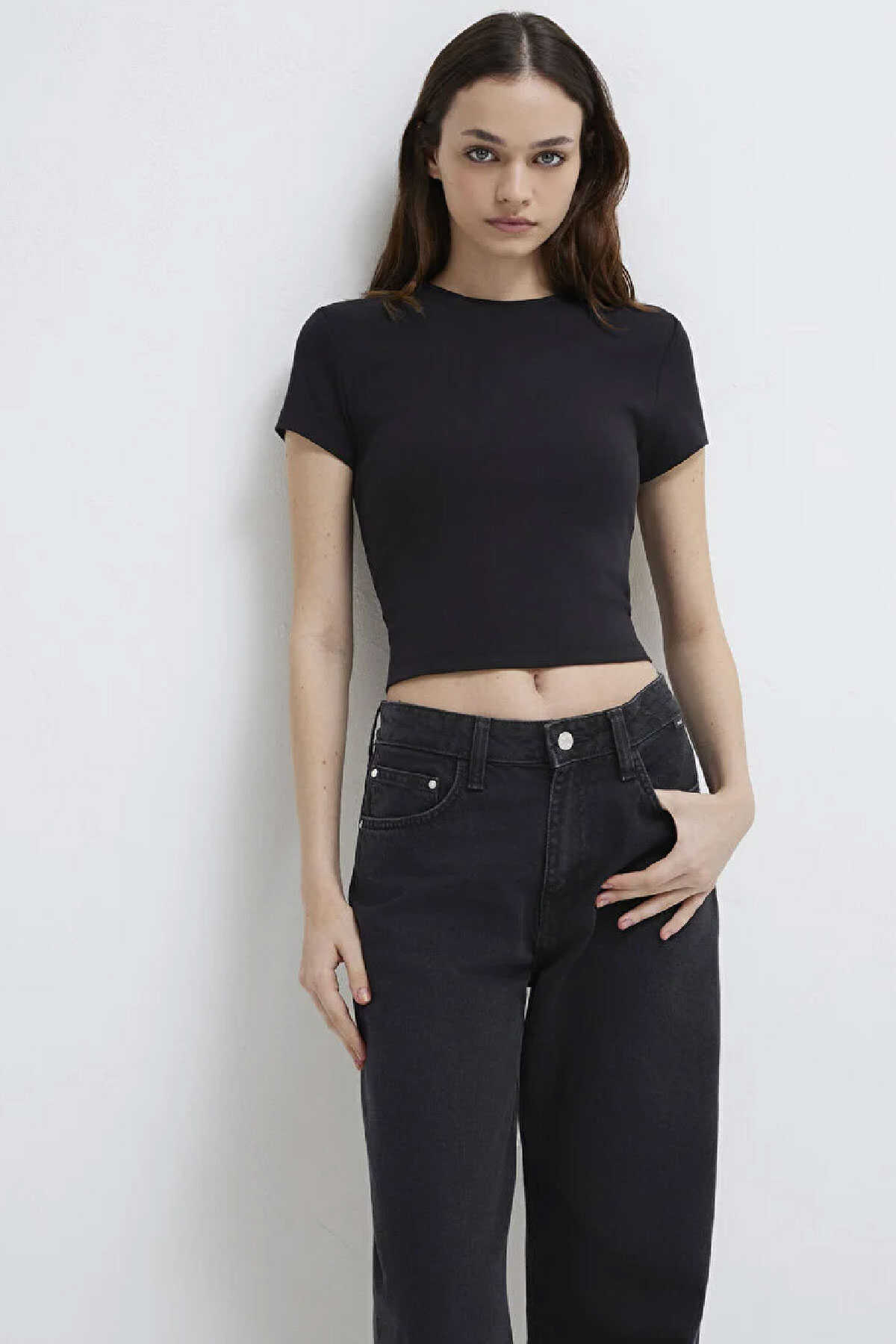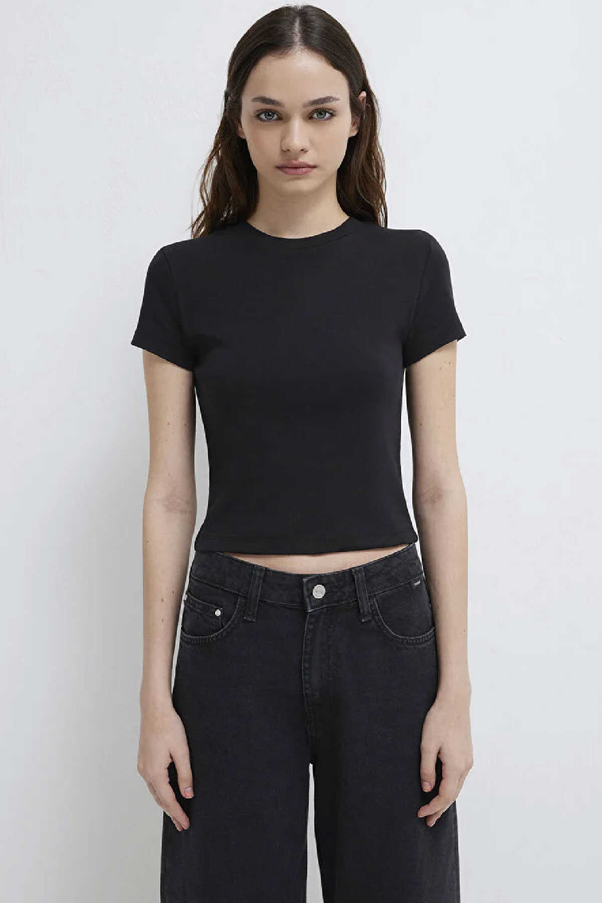 Siyah Basic Crop Tişört yüzde yüz pamuklu orta ağırlıkta kumaştan üretilmiştir. -Crop fit kısa kesim özelliği ile modern bir görünüm sunarken bisiklet yakası klasik bir tarz katar. -Kısa kollu tasarımı ve düz dokusuyla bu tişört günlük kullanım için ideal bir seçenektir.-Crop Kısa Kesim-Ürün Kodu: 1600814-900-Kumaş Bilgileri-%100 Pamuk-Manken Ölçüleri-Jean: Bel: 26 Boy: 34 Üst: S-Boy: 176 cm Bel: 59 cm Göğüs: 80 cm Kalça: 88 cm-Menşei: Türkiye