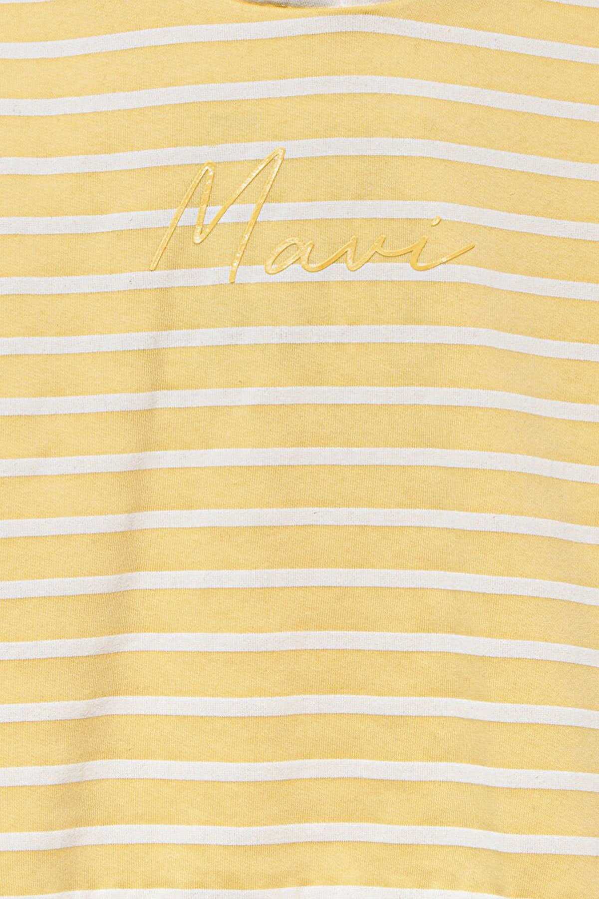 Mavi nin kız çocuk koleksiyonundan Mavi Logo Baskılı Çizgili Sarı Sweatshirt.-Ürün Kodu: 7S10100-89149-Kumaş Bilgileri-%67 Pamuk-%33 Polyester-Manken Ölçüleri-Jean: Bel: 7-8 Yaş Üst: 7-8 Yaş-Menşei: Türkiye