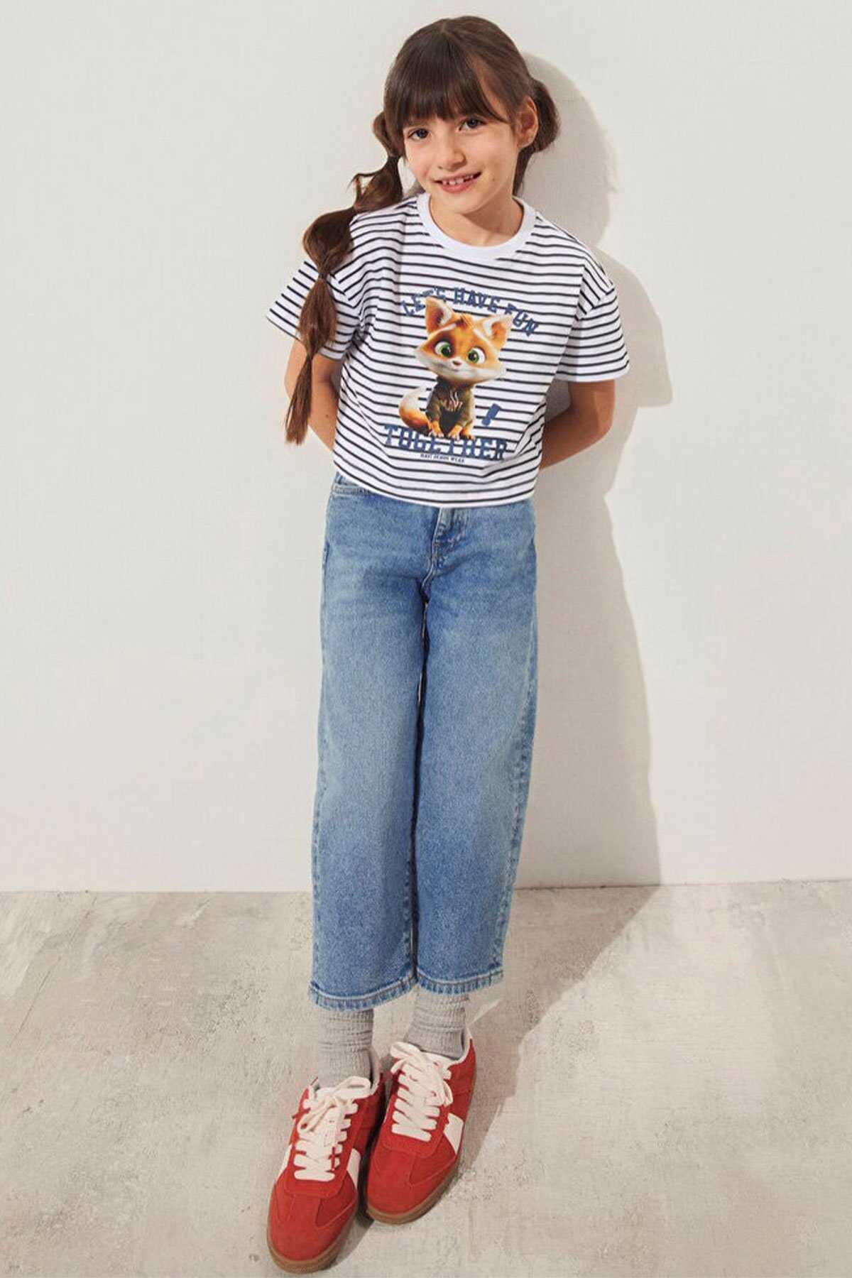 Mavi nin kız çocuk koleksiyonundan Kedi Baskılı Çizgili Crop Tişört.-Ürün Kodu: 7610280-85308-Kumaş Bilgileri-%100 Pamuk-Manken Ölçüleri-Jean: Bel: 7-8 Yaş Üst: 7-8 Yaş-Menşei: Türkiye