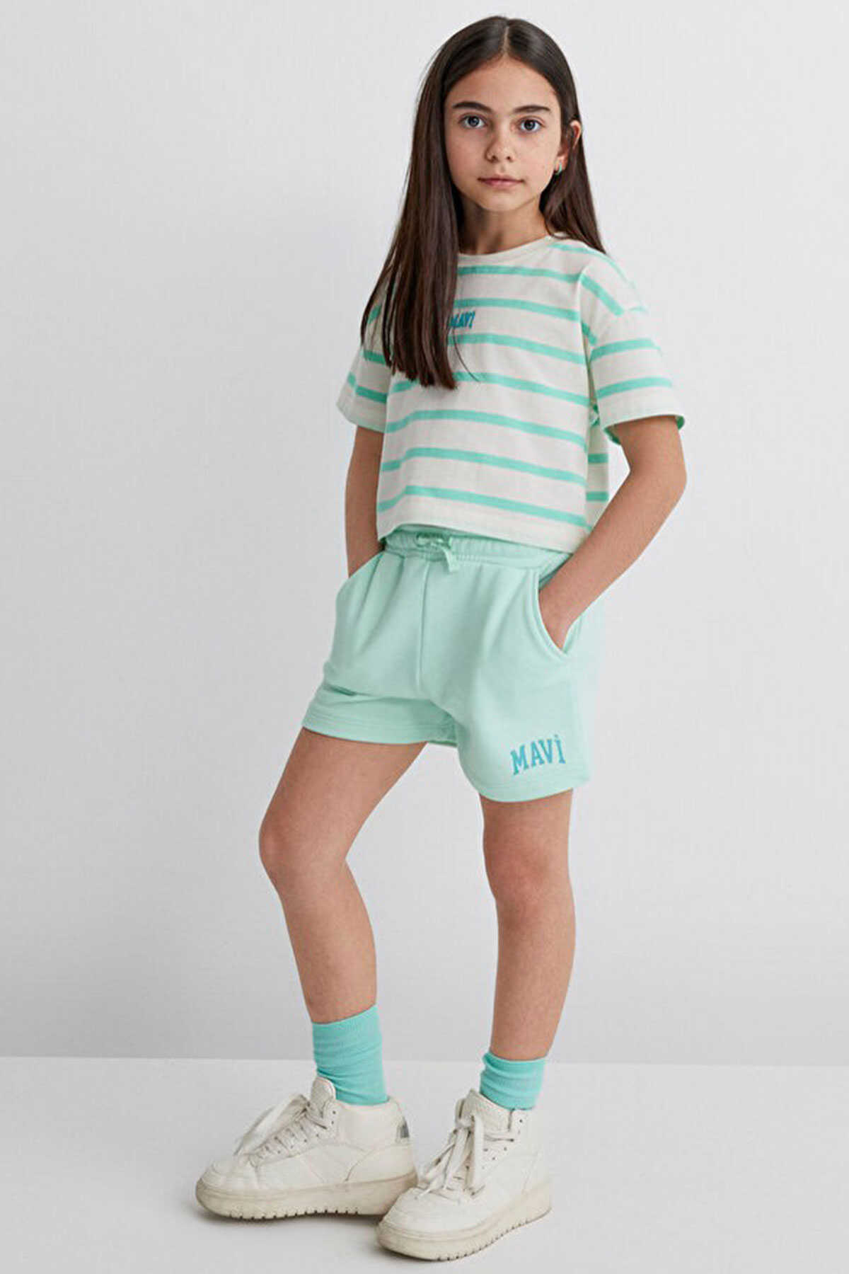 Mavi nin kız çocuk koleksiyonundan Mavi Logo Baskılı Yeşil Şort. -Şardonsuz iki adet yan cep iple ayarlanabilir bel.-Ürün Kodu: 7410002-71643-Kumaş Bilgileri-%67 Pamuk-%33 Polyester-Manken Ölçüleri-Alt: Bel: 7-8 Yaş Üst: 7-8 Yaş-Menşei: Türkiye