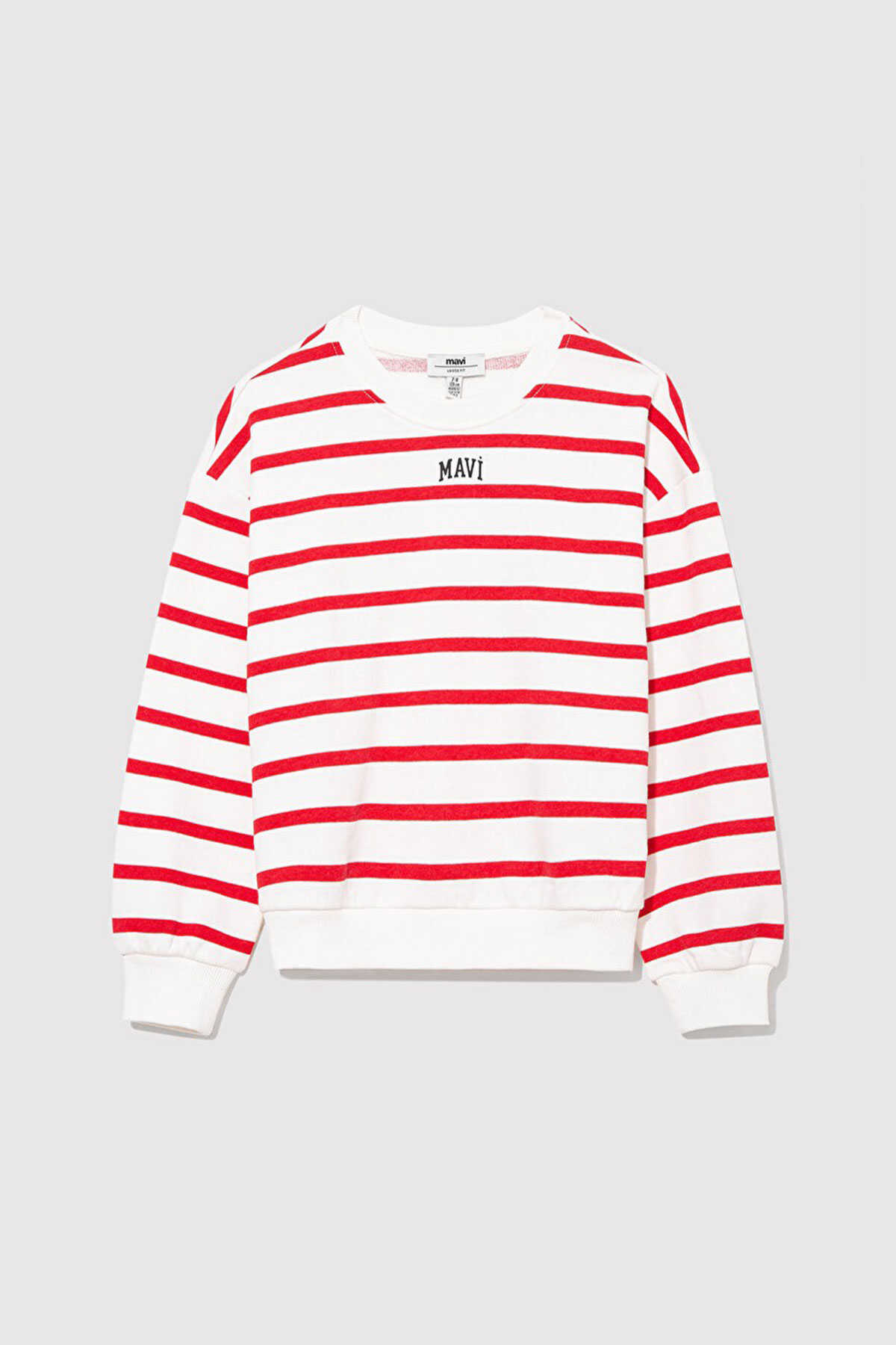 Mavi nin kız çocuk koleksiyonundan Mavi Logo Baskılı Kırmızı Çizgili Sweatshirt. - Şardonsuz. - Loose Fit Bol Rahat Kesim - Ürün Kodu: 7S10038-82054 - Kumaş Bilgileri - %68 Pamuk - %32 Polyester - Manken Ölçüleri - Jean: Bel: 7-8 Yaş Üst: 7-8 Yaş - Menşei: Türkiye
