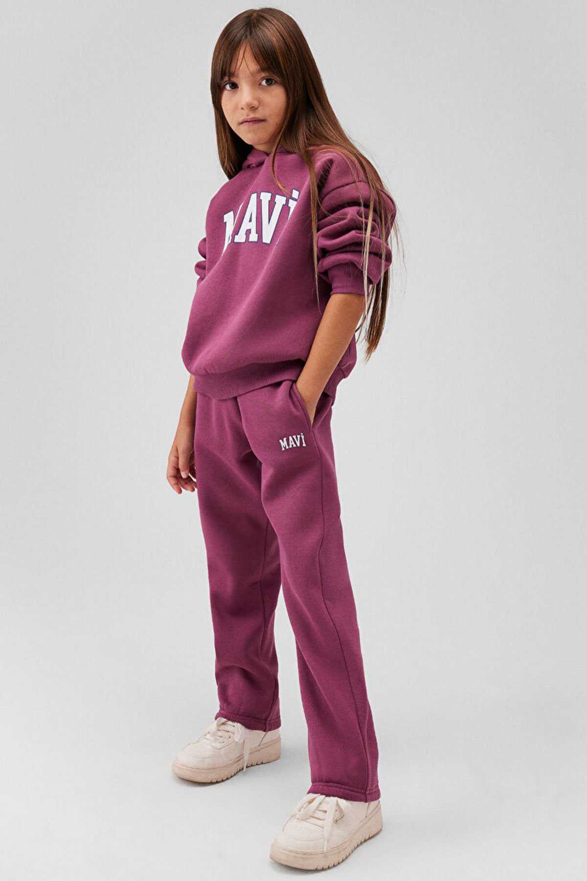 Mavi nin kız çocuk koleksiyonundan Mavi Logo Baskılı Mor Eşofman Altı-Şardonlu-İki adet yan cep-İple ayarlanabilir bel-Lastik paça.-Ürün Kodu: 7010000-70651