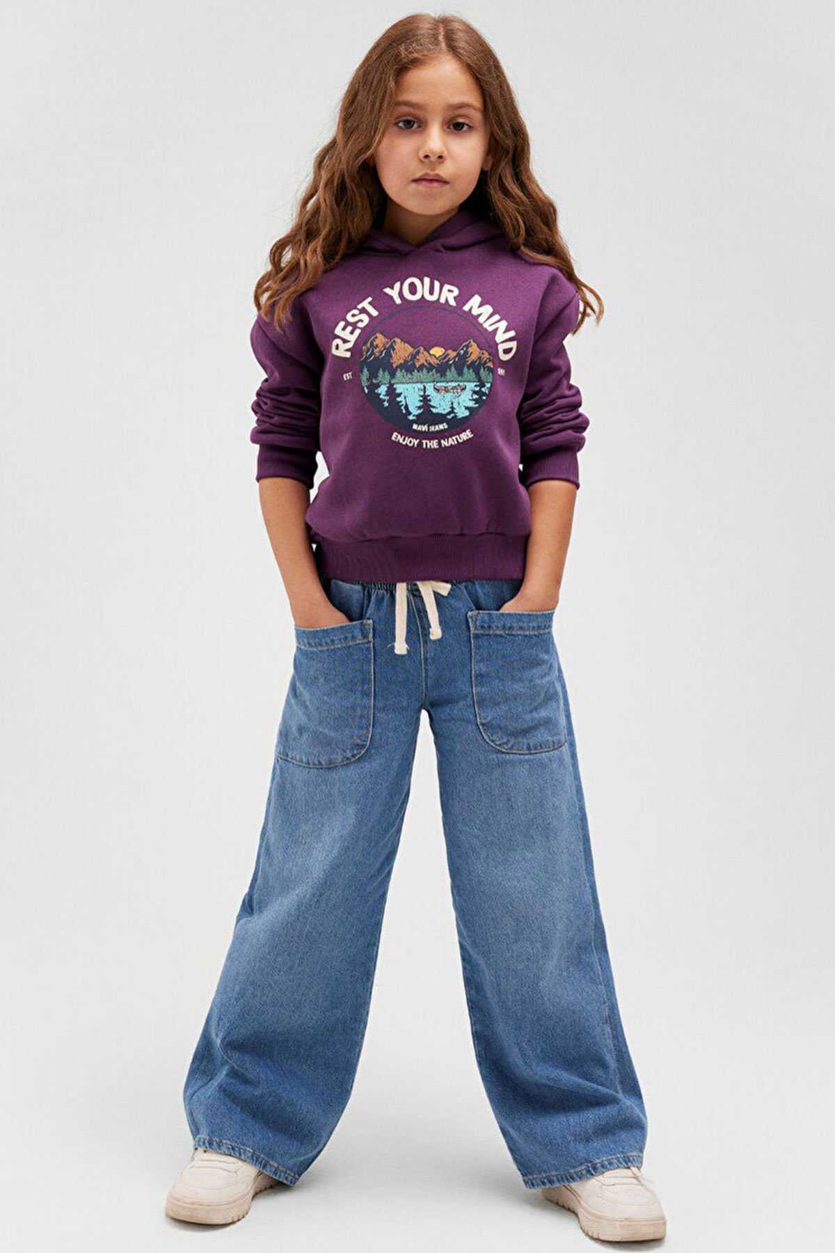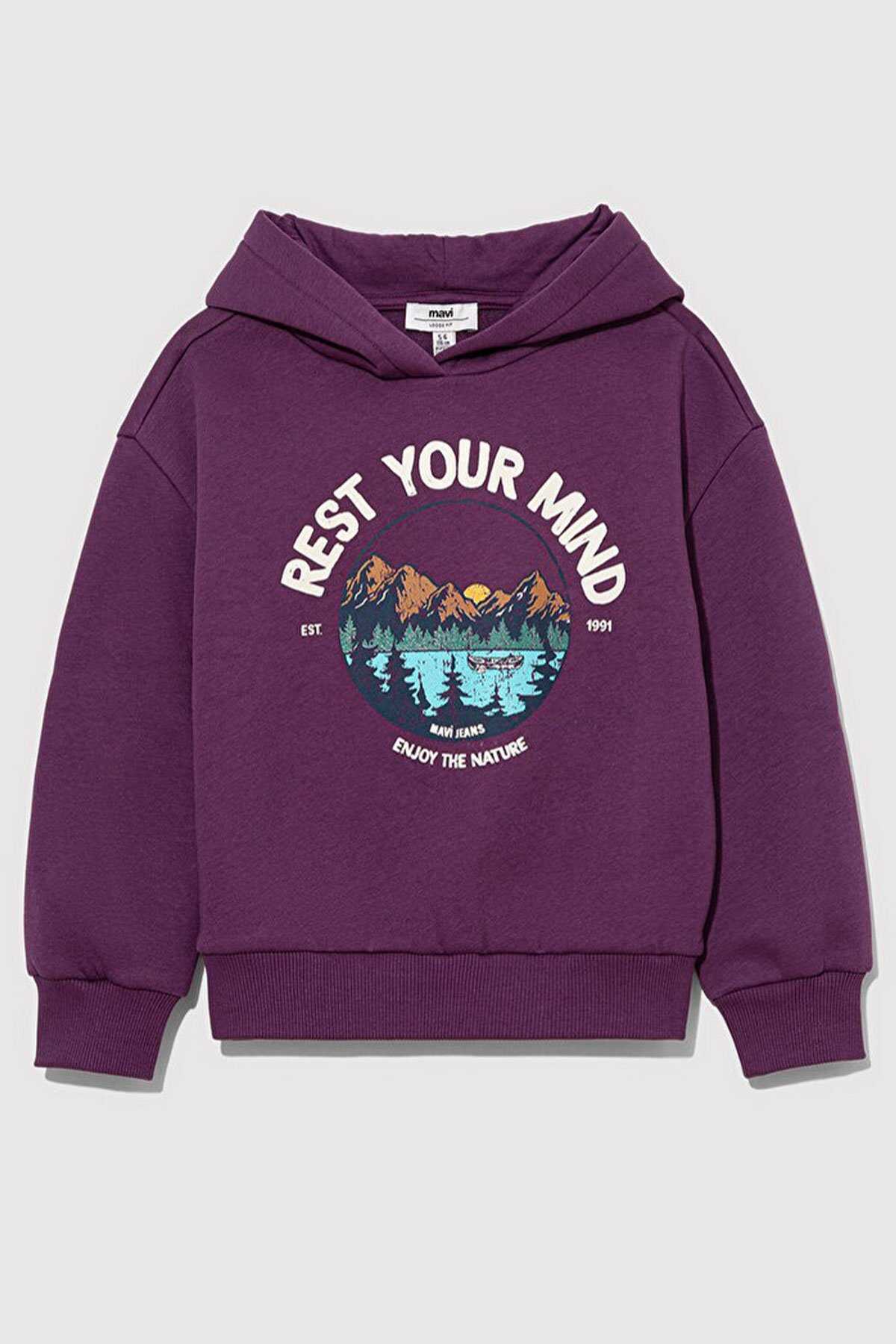Mavi nin kız çocuk koleksiyonundan Baskılı Mor Sweatshirt. -Şardonlu kapüşonlu.-Ürün Kodu: 7S10060-70577-Kumaş Bilgileri-%62 Pamuk-%38 Polyester-Manken Ölçüleri-Jean: Bel: 7-8 Yaş Üst: 7-8 Yaş