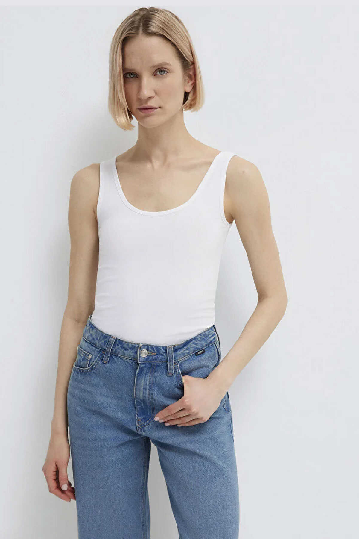 Beyaz Basic Stretch Atlet pamuk karışımlı esnek kumaştan üretilmiş orta ağırlıkta bir üründür. -Fitted Vücuda Oturan Kesim-Fitted vücuda oturan kesimi ve kolsuz tasarımı ile şık bir görünüm sunar. -Kayık yaka özelliği ile rahat bir kullanım sağlayan bu atlet düz dokusu ve beyaz rengiyle her tarza uyum sağlar.-Ürün Kodu: 164156-620-Kumaş Bilgileri-%95 Pamuk-%5 Elastan-Manken Ölçüleri-Jean: Bel: 26 Boy: 34 Üst: S-Boy: 177 cm Bel: 61 cm Göğüs: 82 cm Kalça: 89.5 cm-Menşei: Türkiye