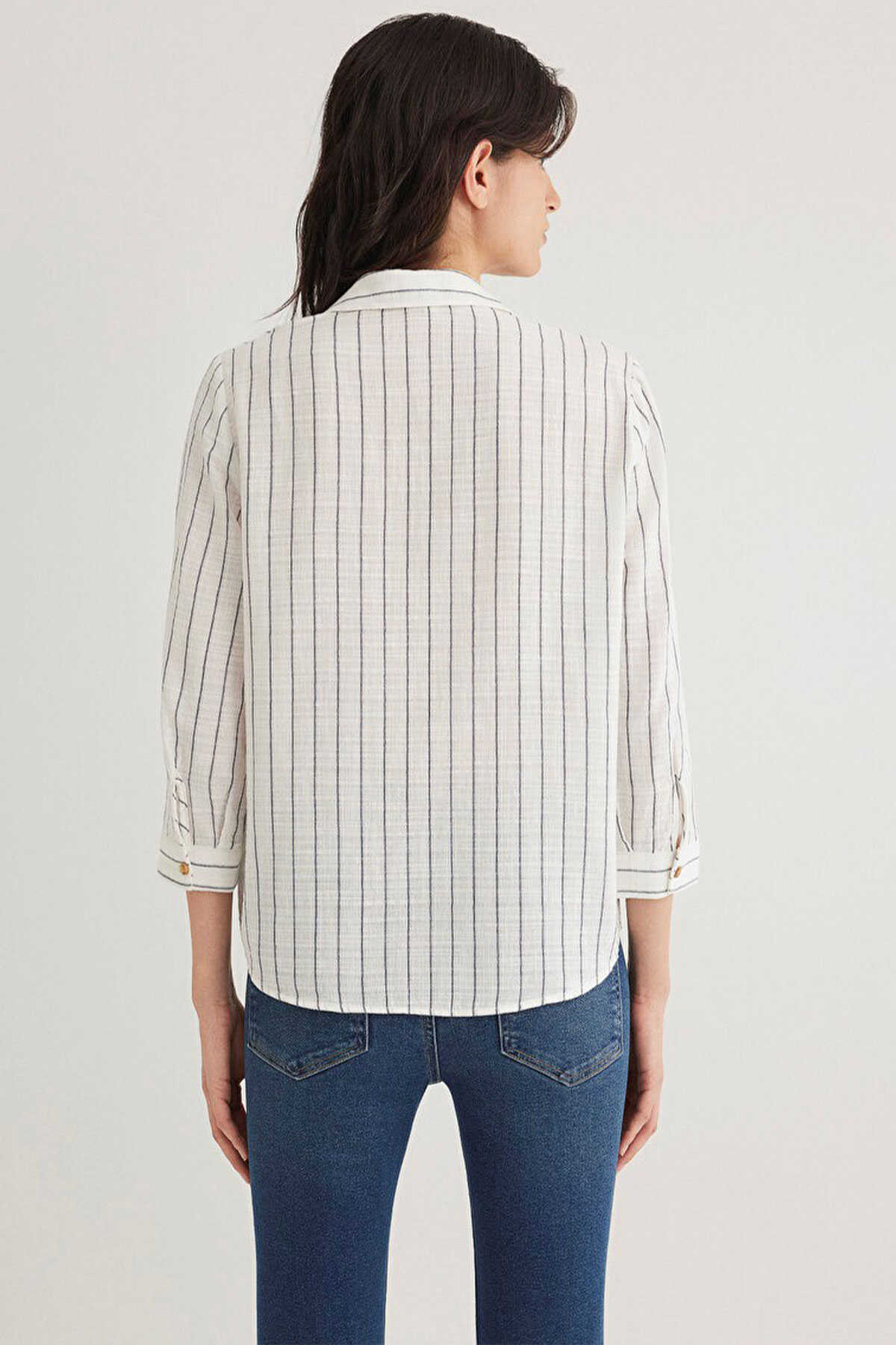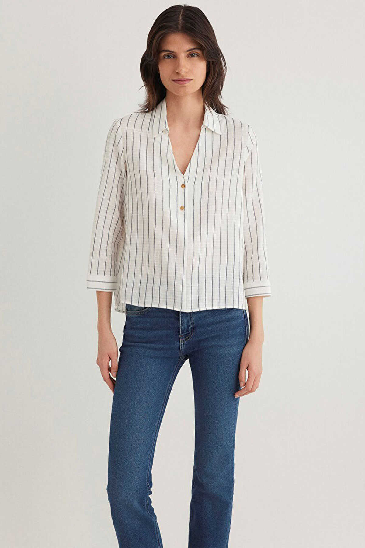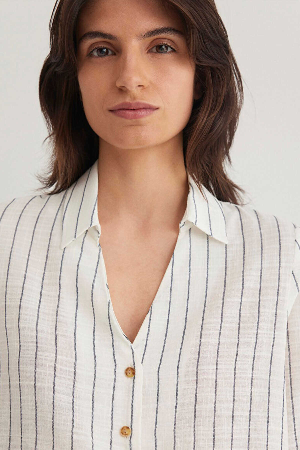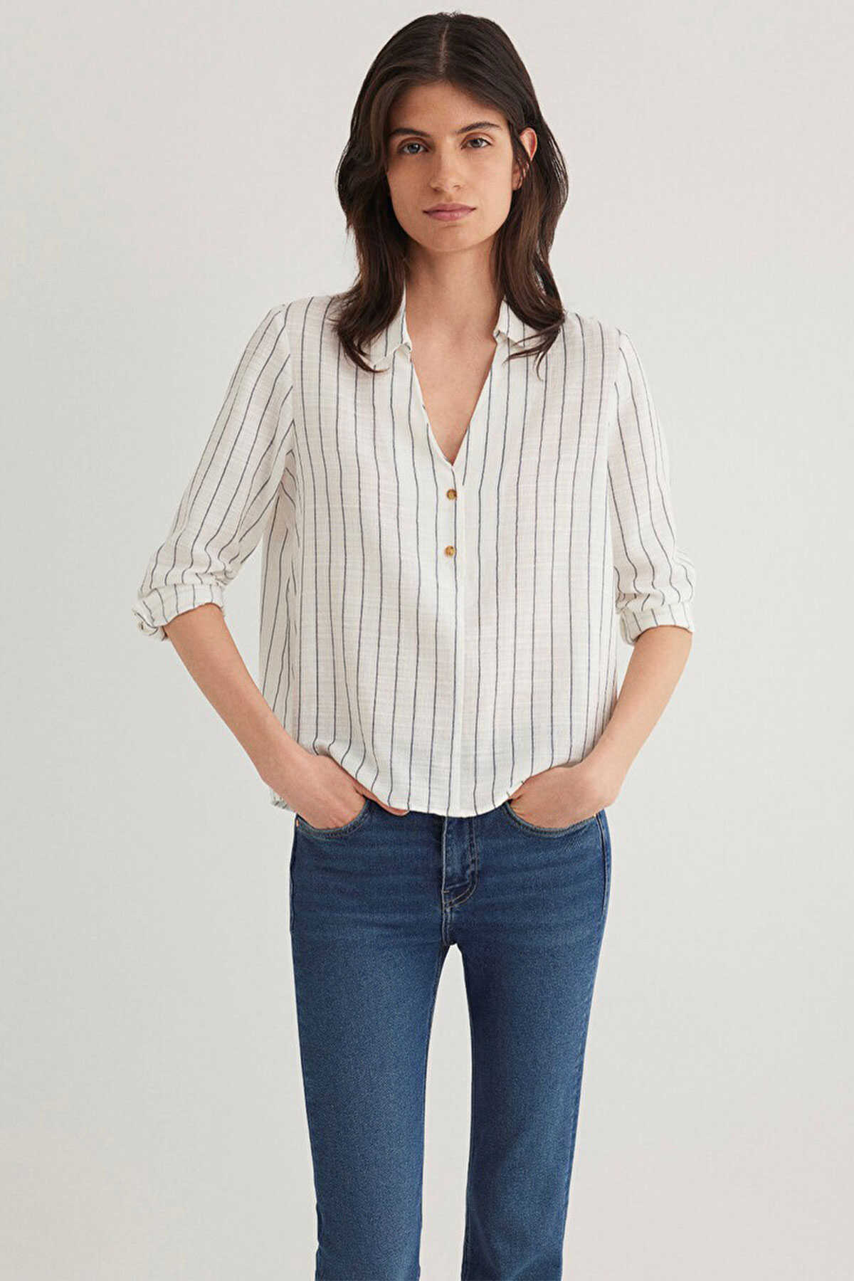 Mavi nin kadın koleksiyonundan Çizgili Bluz.-Regular Fit Normal Kesim-Ürün Kodu: 122400-87977-Kumaş Bilgileri-%58 Pamuk-%39 Viskoz-%3 Akrilik-Manken Ölçüleri-Jean: Bel: 26 Boy: 32 Üst: S-Boy: 180 cm Bel: 63 cm Göğüs: 82 cm Kalça: 89.5 cm