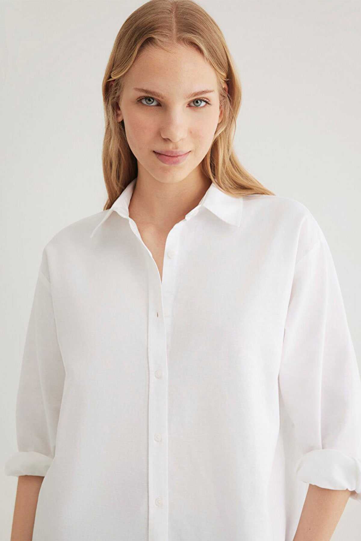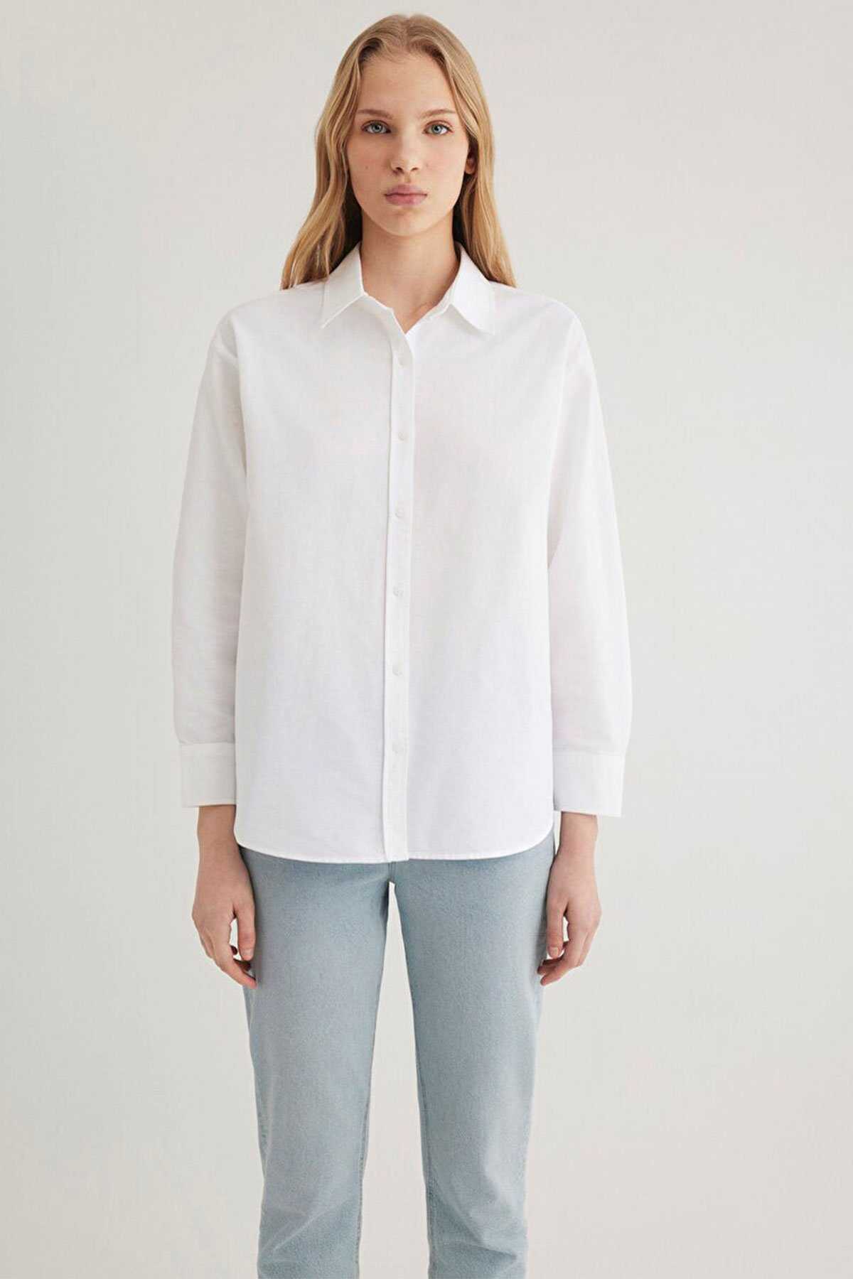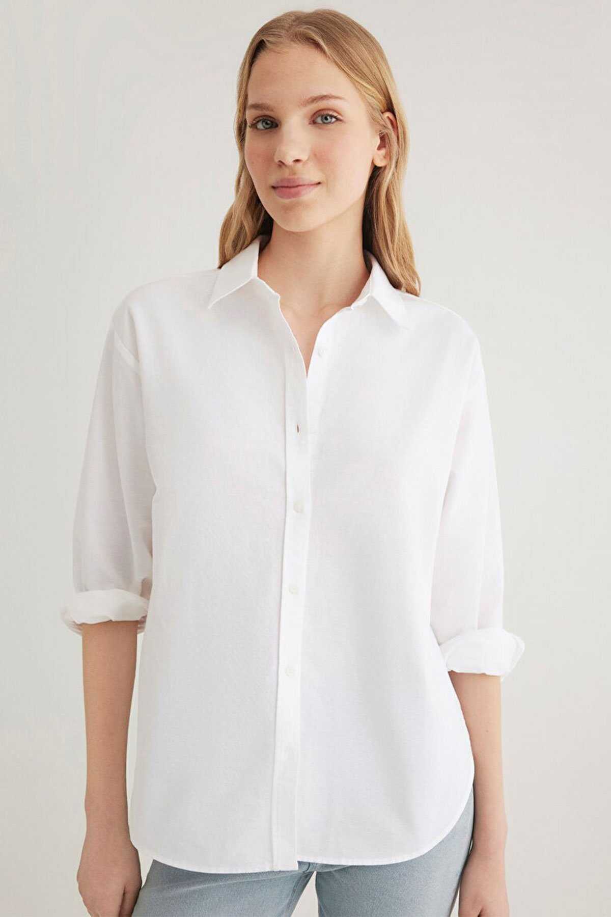 Mavi nin kadın koleksiyonundan Beyaz Gömlek-Loose Fit Bol Rahat Kesim-Ürün Kodu: 1211028-620-Kumaş Bilgileri-%100 Pamuk-Manken Ölçüleri-Jean: Bel: 26 Boy: 29 Üst: S-Boy: 179 cm Bel: 59 cm Göğüs: 84 cm Kalça: 90 cm